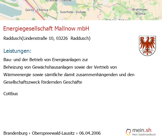 bei Vetschau seit 4/2007Raddusch (Querweg 4 b, 03226 Raddusch, Beteiligung an anderen Unternehmen