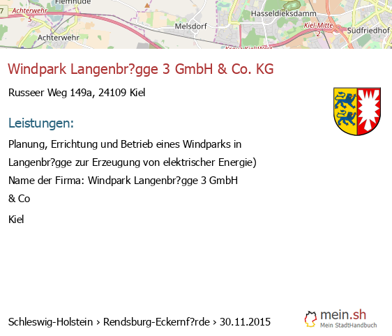 bei Kiel seit 12/2006Kiel (Russeer Weg 149 a, 24109 Kiel, Planung, Errichtung und Betrieb eines Windparks in den Gemeinden D?brichen und Prie?en zur Erzeugung von elektrischer Energie