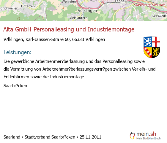 bei V?lklingen seit 2/2006V?lklingen (Rathausstra?e 75-79, 66333 V?lklingen, Private Arbeitsvermittlung)
