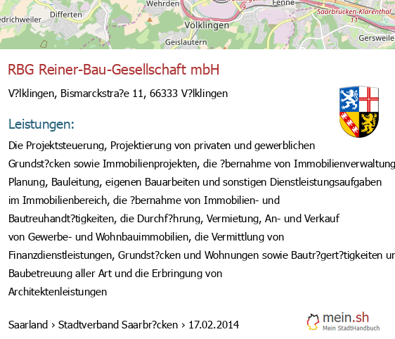 bei V?lklingen seit 4/2017Leistungen: Der Kauf und Handel von Grundst?cken sowie der Bau, die Errichtung und der Verkauf von Bauwerken..