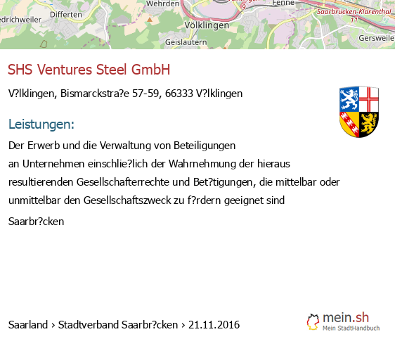 bei V?lklingen seit 5/2017Leistungen: Der Erwerb, das Halten und Verwalten von Beteiligungen an anderen Gesellschaften.