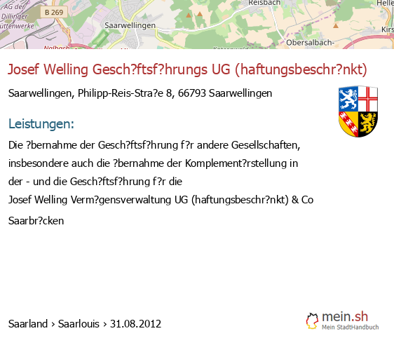 bei Saarwellingen seit 7/2008Leistungen: Die Verwaltung eigenen Verm?gens sowie die ?bernahme der Gesch?ftsf?hrung sowie der pers?nlichen Haftung bei der Kommanditgesellschaft mit der Firma Philippi Verm?gensverwaltung GmbH &..