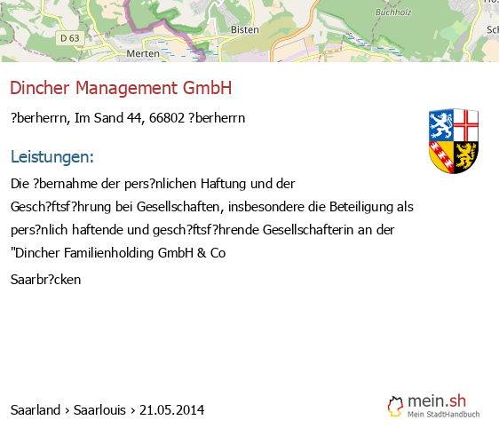 bei ?berherrn seit 4/2008?berherrn (Bahnstra?e 2 b, 66802 ?berherrn, Gegenstand des Unternehmens ist - der Betrieb eines Schl?sseldienstes bzw