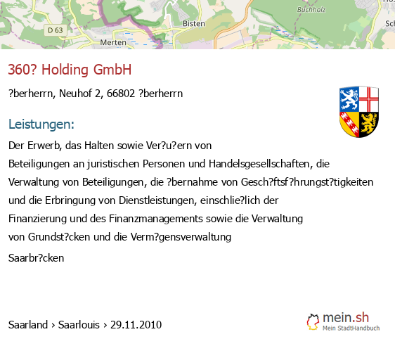 bei ?berherrn seit 8/2006?berherrn (Im H?userfeld 1, 66802 ?berherrn, Die Errichtung, der Erwerb und die Vermietung/Verpachtung von Immobilien und Anlageverm?gen