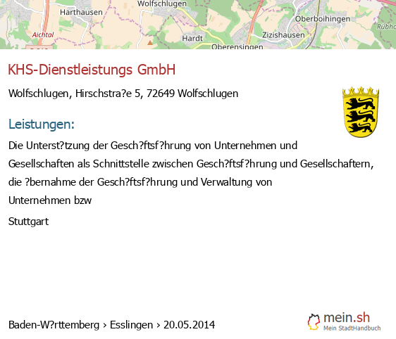 bei Wolfschlugen seit 5/2014Leistungen: Die Unterst?tzung der Gesch?ftsf?hrung von Unternehmen und Gesellschaften als Schnittstelle zwischen Gesch?ftsf?hrung und Gesellschaftern, die ?bernahme der Gesch?ftsf?hrung und Verwaltung von..