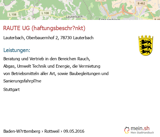 Die Informationen dieser Seite über Lauterbach in Baden-W?rttemberg wurden durch uns mit Recherche öffentlicher Landkreis Rottweil Quellen erstellt, und können fehlerbehaftet oder veraltet sein. Für Öffnungszeiten schauen Sie bitte auf die Seite der Lauterbacher Anbieter. Für den Gesellschafter, die Bilanz, den Jahresabschluss, Umsatz und Gewinn empfehlen wir, den Bundesanzeiger zu nutzen. Wenn 78730 Lauterbach Einträge aktualisiert oder entfernt werden müssen, geben Sie uns bitte einen Hinweis.