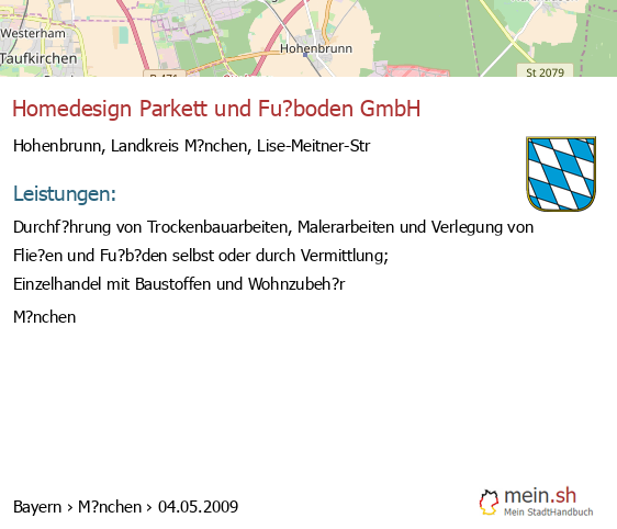 bei Hohenbrunn seit 5/2009Leistungen: Durchf?hrung von Trockenbauarbeiten, Malerarbeiten und Verlegung von Flie?en und Fu?b?den selbst oder durch Vermittlung; Einzelhandel mit Baustoffen..