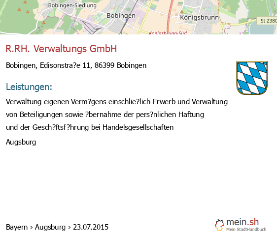 bei Bobingen seit 4/2017Leistungen: Erwerb sowie Verwaltung, Vermietung und Verpachtung von Grundst?cken und..