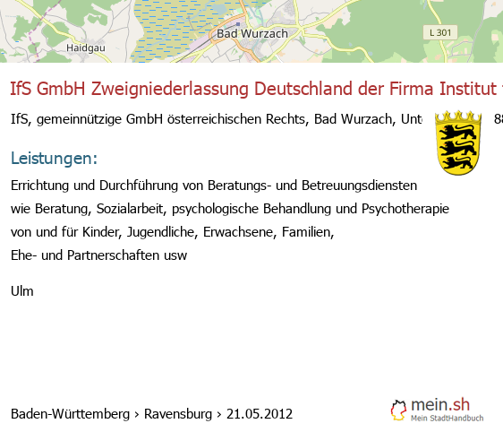 IfS, gemeinnützige GmbH österreichischen Rechts, Bad Wurzach, Unterwiesen 3, 88410 Bad Wurzach